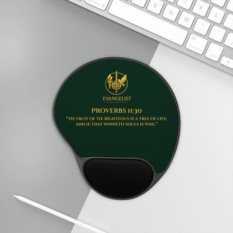 A soft, supportive mouse pad crafted for long hours at the desk and quiet moments of reflection. Deep forest green and gold lettering create a calm, reverent look while the contoured Memory Foam™ wrist rest cradles your hand to reduce strain. The removable neoprene insert makes cleaning simple, and the low-profile, foot-shaped plastic base keeps the pad stable without sliding. Subtle religious typography and an emblem add dignity—this mouse pad slips seamlessly into a study, home office, or church workspace where focus and comfort matter.